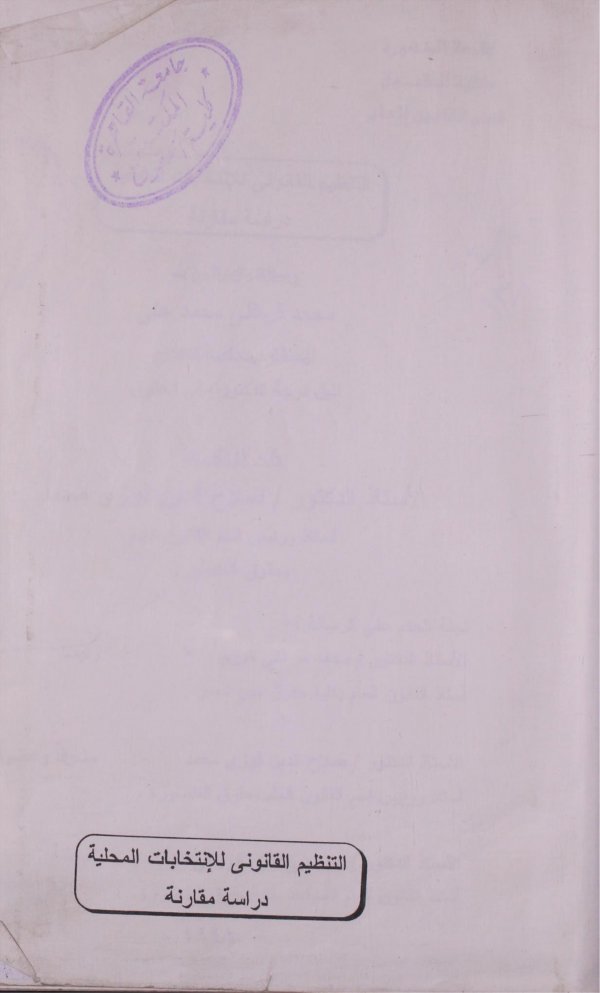 التنظيم القانونى للانتخابات المحلية : دراسة مقارنة / إعداد محمد فرغلى محمد على؛ اشراف صلاح الدين فوزى محمد