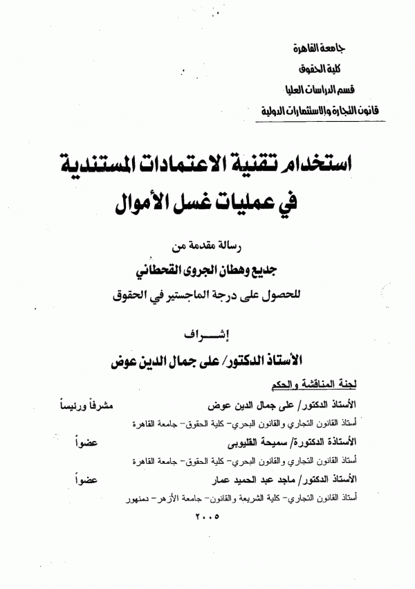 استخدام تقنية الاعتمادات المستندية فى عمليات غسل الاموال / جديع وهطان الجروى القحطاني