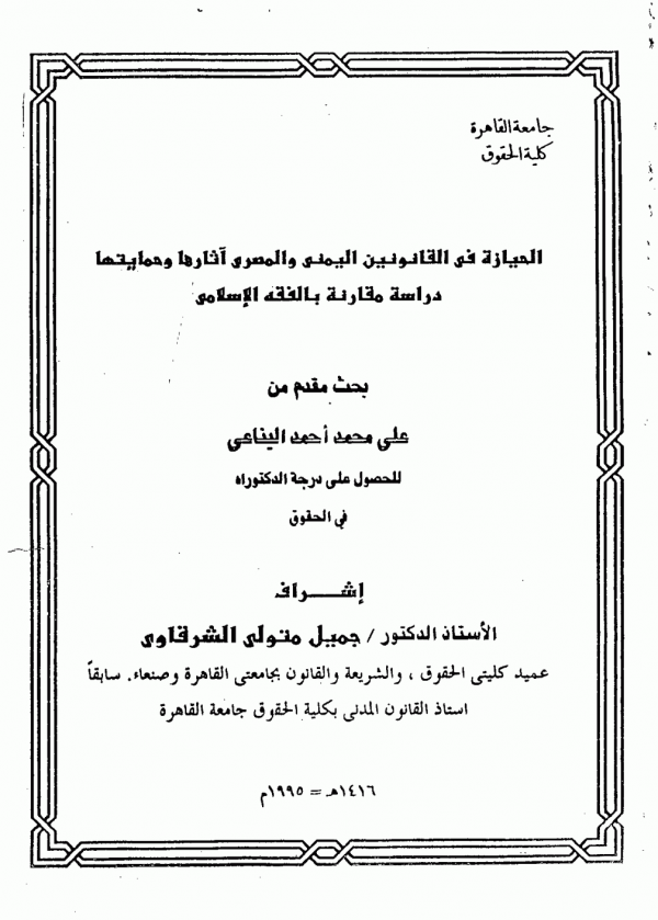 اطروحة(دكتوراه) - جامعة القاهرة - كلية الحقوق - قسم القانون المدني، 1995