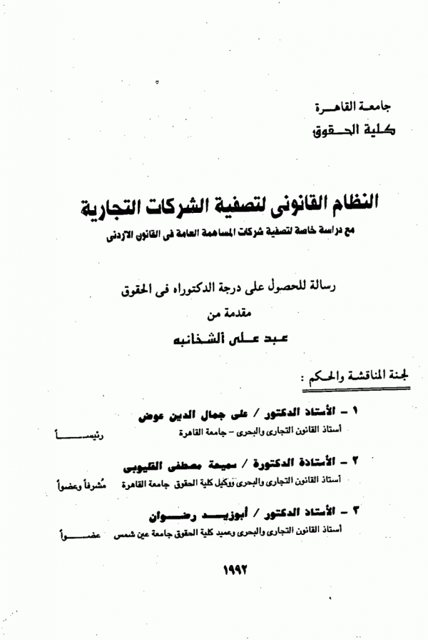 اطروحة(دكتوراه) - جامعة القاهرة - كلية الحقوق - قسم القانون التجارى، 1992