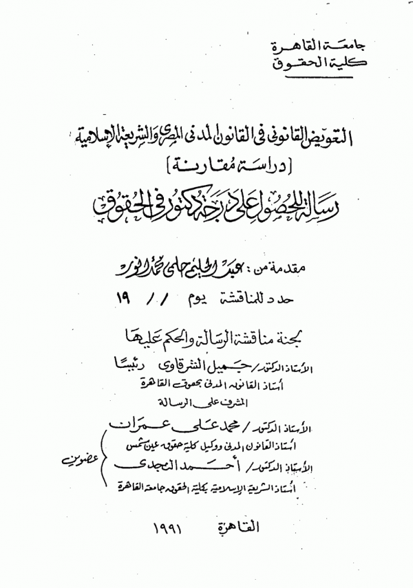 اطروحة(دكتوراه) - جامعة القاهرة - كلية الحقوق - قسم القانون المدنى، 1991
