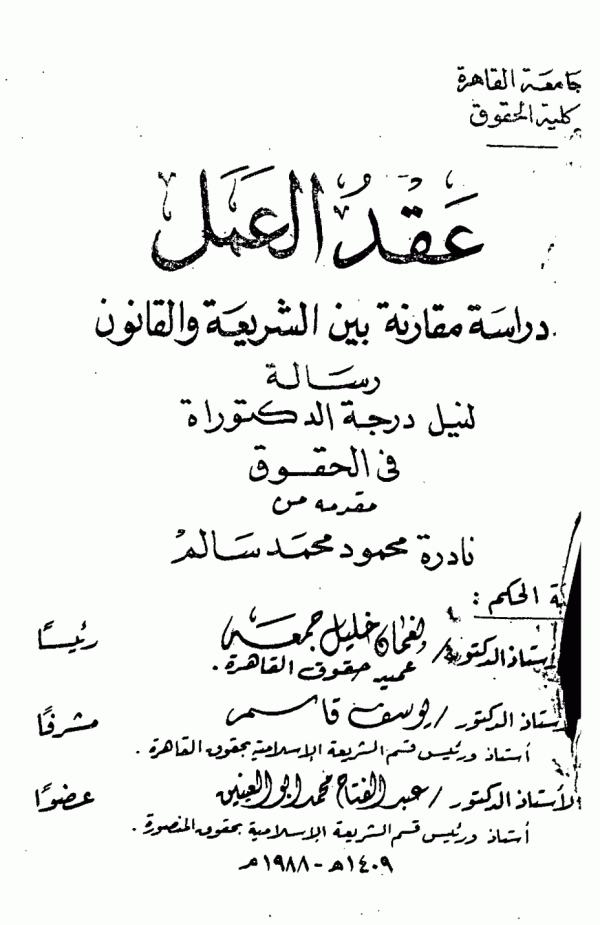اطروحة(دكتوراه) - جامعة القاهرة - كلية الحقوق - قسم القانون المدني، 1988