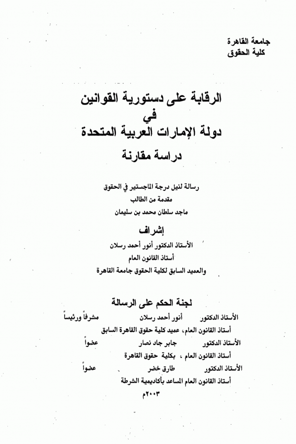 اطروحة (ماجستير) - جامعة القاهرة - كلية الحقوق - قسم القانون العام، 2003