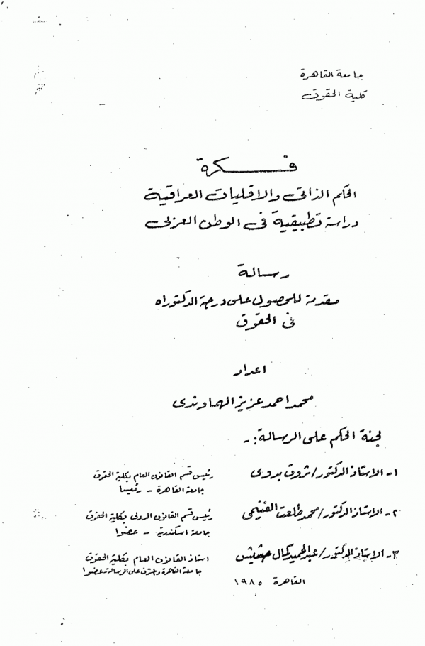 اطروحة(دكتوراه) - جامعة القاهرة - كلية الحقوق - قسم القانون العام، 1985