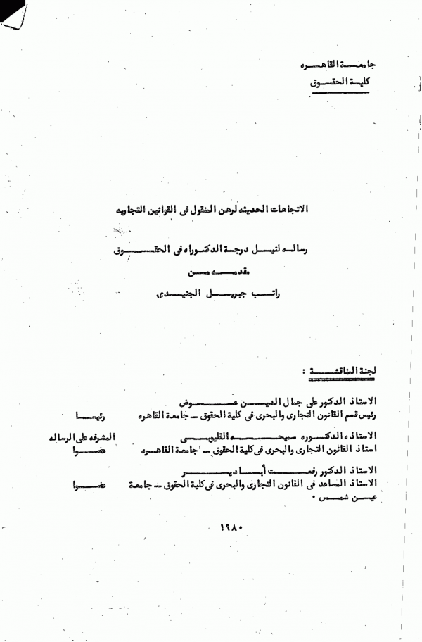 اطروحة(دكتوراه) - جامعة القاهرة - كلية الحقوق - قسم القانون التجارى، 1980