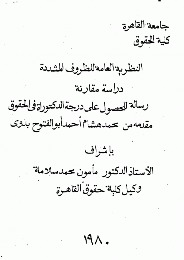 أطروحة (دكتوراه) - جامعة القاهرة، كلية الحقوق، قسم القانون الجنائي 1980
