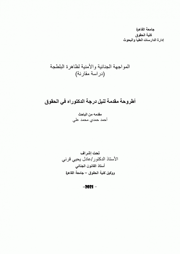 Dissertation note: أطروحة (دكتوراه) - جامعة القاهرة - كلية الحقوق - قسم القانون الجنائي 2021.