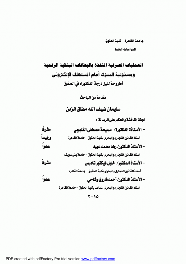 Dissertation note: أطروحة (دكتوراه)-جامعة القاهرة، 2019، قسم القانون الجنائي