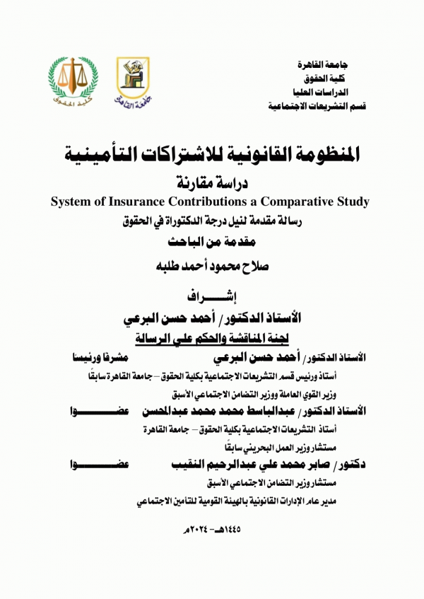 Dissertation note: اطروحة (دكتوراه) - جامعة القاهرة - كلية الحقوق - قسم التشريعات الإجتماعية، 2019