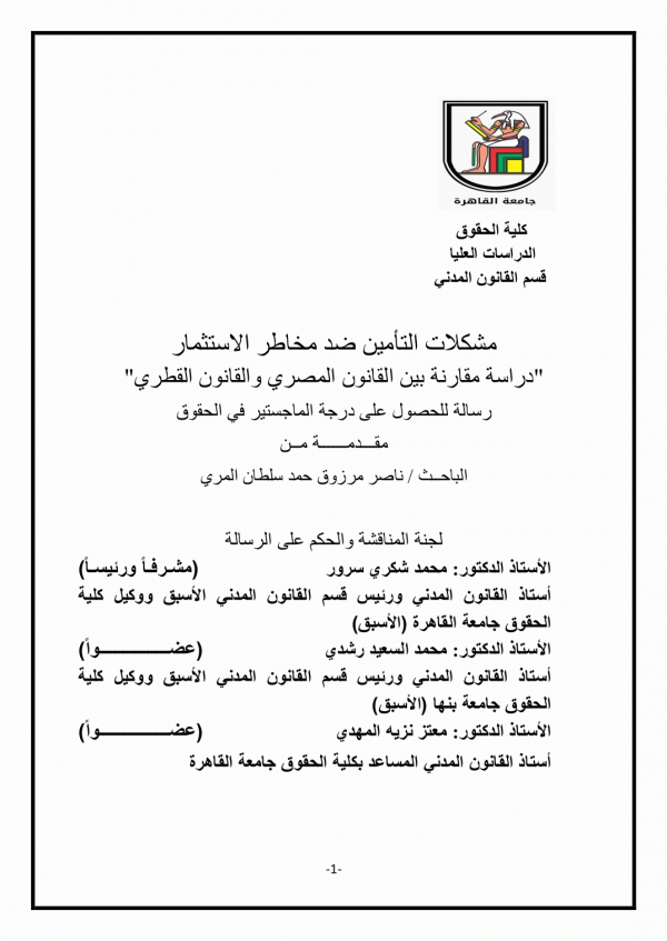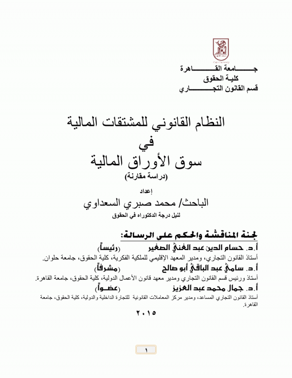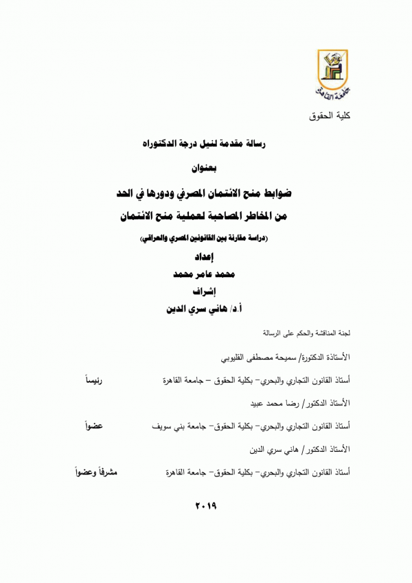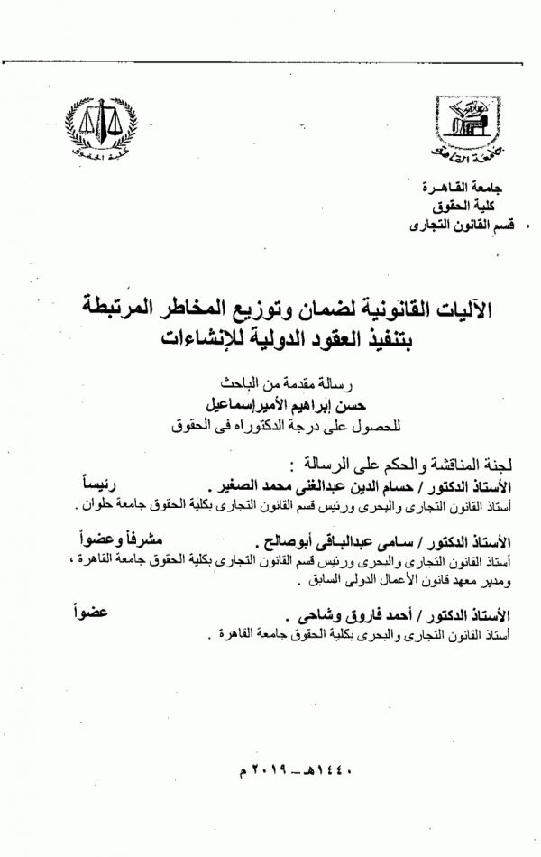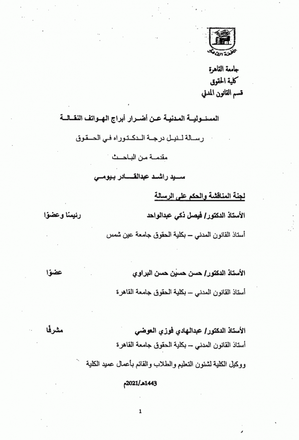 Dissertation note: اطروحة (دكتوراه) - جامعة القاهرة - كلية الحقوق - قسم القانون المدنى، 2021