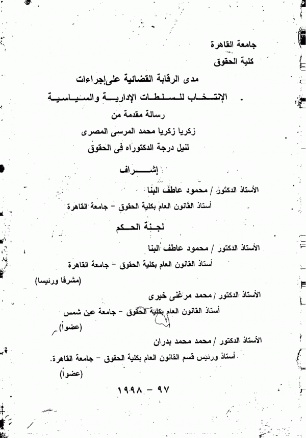 Dissertation note: اطروحة (دكتوراه) - جامعة القاهرة - كلية الحقوق - قسم القانون العام، 1998