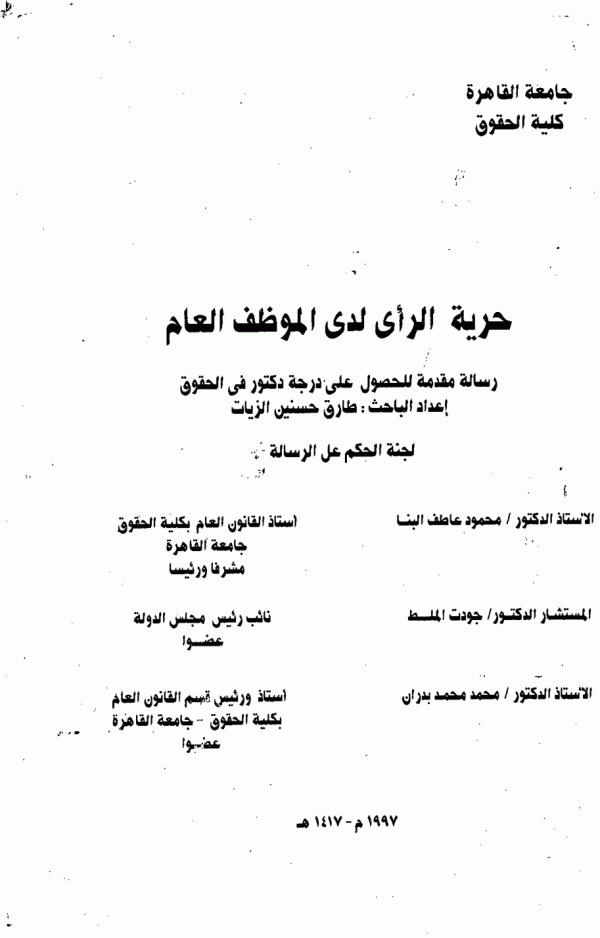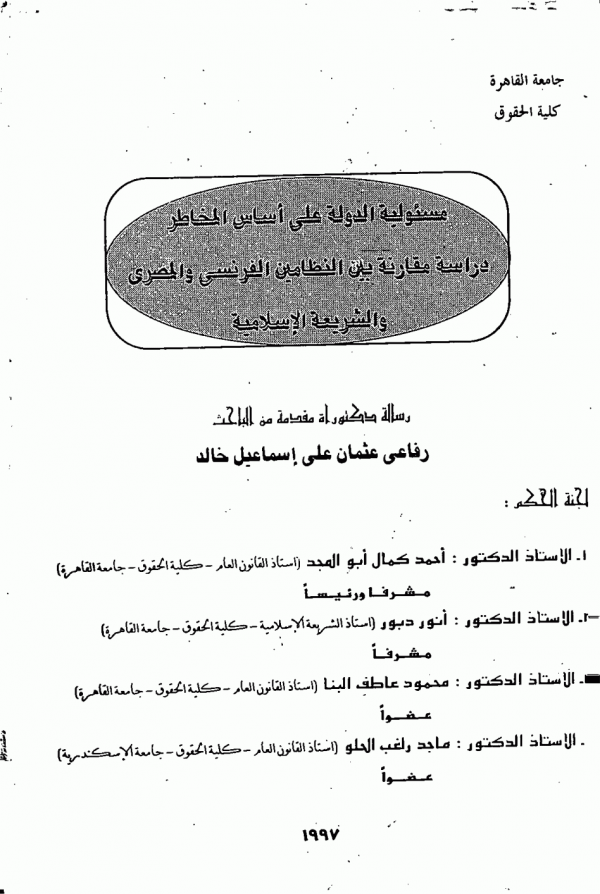 Dissertation note: اطروحة (دكتوراه) - جامعة القاهرة - كلية الحقوق - قسم القانون العام، 1997
