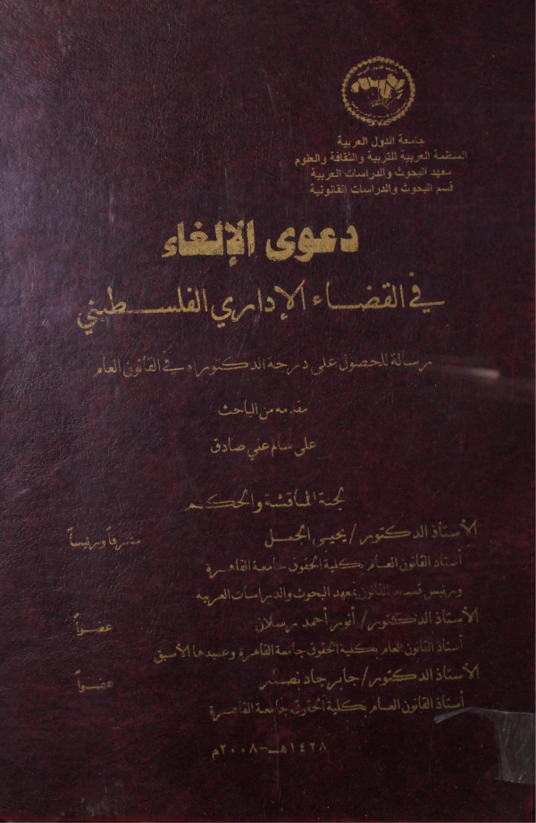 دعوى الإلغاء في القضاء الإداري الفلسطيني / إعداد علي سالم علي صادق؛ إشراف يحيى الجمل by