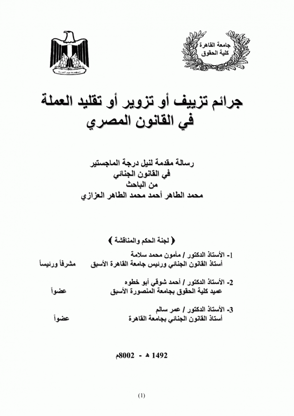 Dissertation note: اطروحة (ماجستير) - جامعة القاهرة - كلية الحقوق - قسم القانون الجنائى، 2003