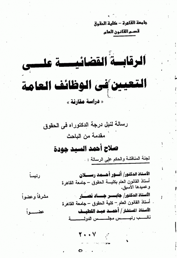 Dissertation note: اطروحة (ماجستير) - جامعة القاهرة - كلية الحقوق - قسم القانون الجنائى 2003