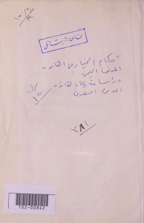 احكام الخيار فى القانون المدنى اليمني : دراسة مقارنة بالقانون المدنى المصرى / إعداد عبدالله عبدالله محمد العلفي؛ إشراف حمدى عبدالرحمن by