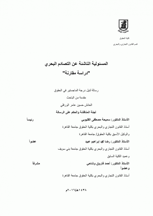 Dissertation note: اطروحة (ماجستير) - جامعة القاهرة - كلية الحقوق، 2016، قسم القانون التجاري