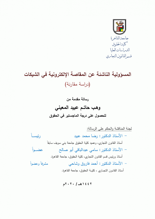 Dissertation note: اطروحة(ماجستير) - جامعة القاهرة - كلية الحقوق - قسم القانون التجاري، 2024