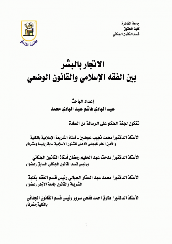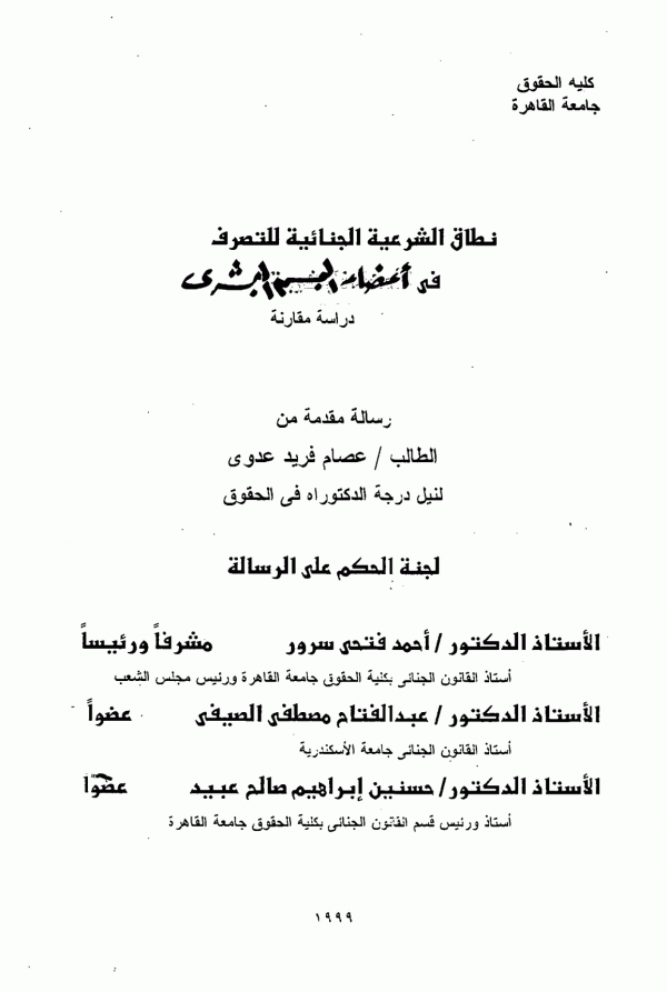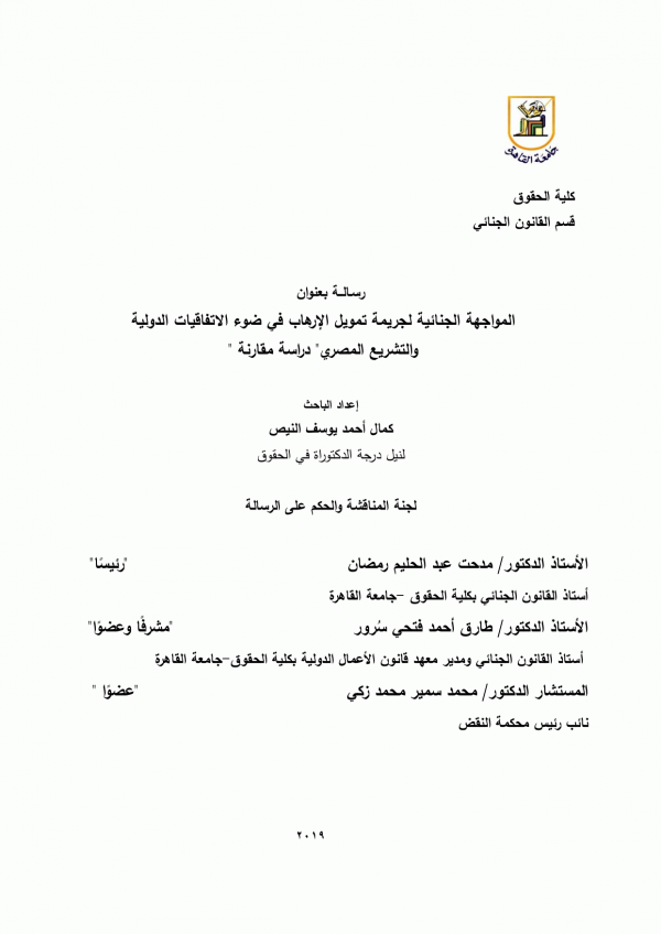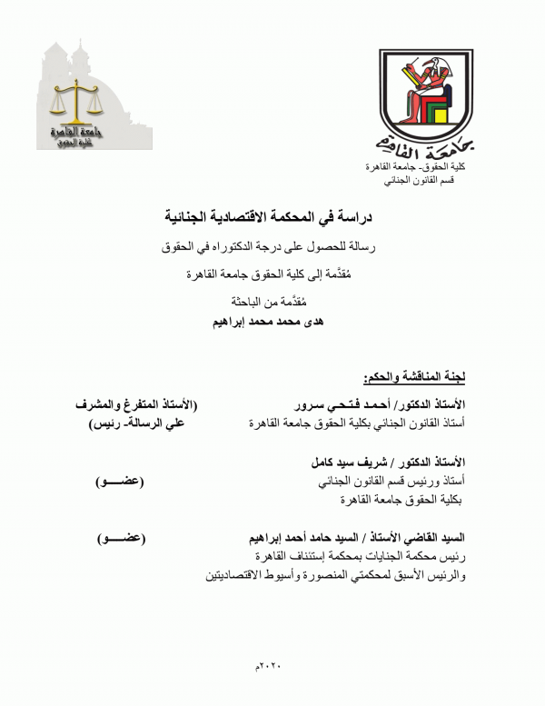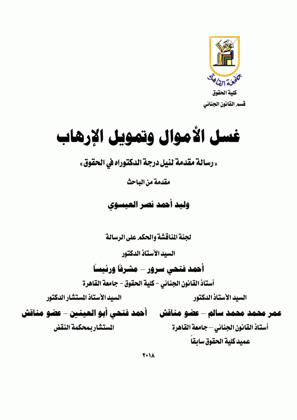 Dissertation note: أطروحة (دكتوراه)-جامعة القاهرة، 2018، قسم القانون الجنائي