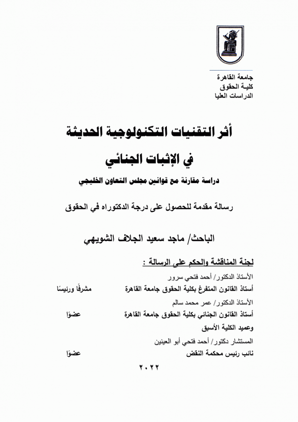 Dissertation note: أطروحة (دكتواره) - جامعة القاهرة - كلية الحقوق - قسم القانون الجنائي 2022.