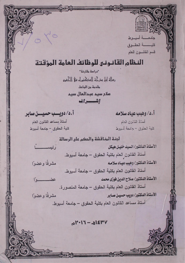 Dissertation note: اطروحة(دكتوراه) - جامعة اسيوط- كلية الحقوق - قسم القانون العام، 2016