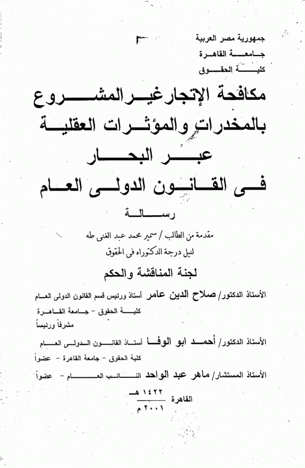 Dissertation note: اطروحة (دكتوراه) - جامعة القاهرة - كلية الحقوق - قسم القانون الدولى، 2003