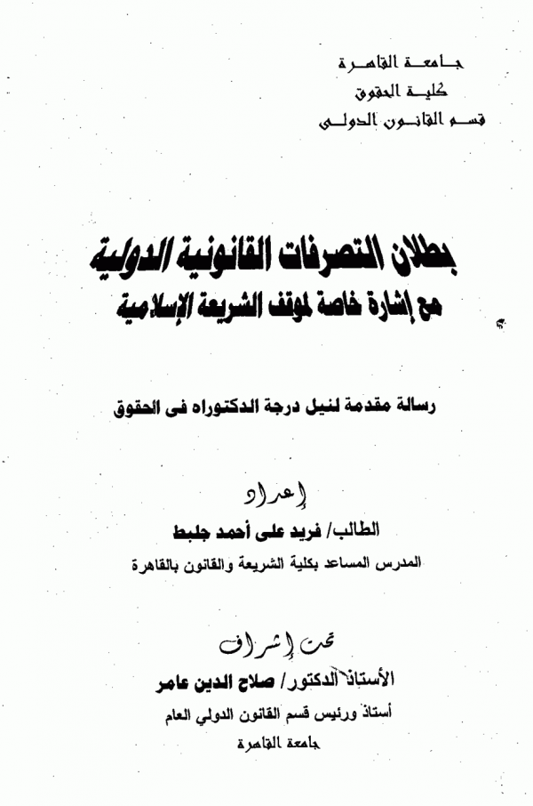 Dissertation note: اطروحة(ماجستير) - جامعة القاهرة - كلية الحقوق - قسم القانون الدولي، 1996