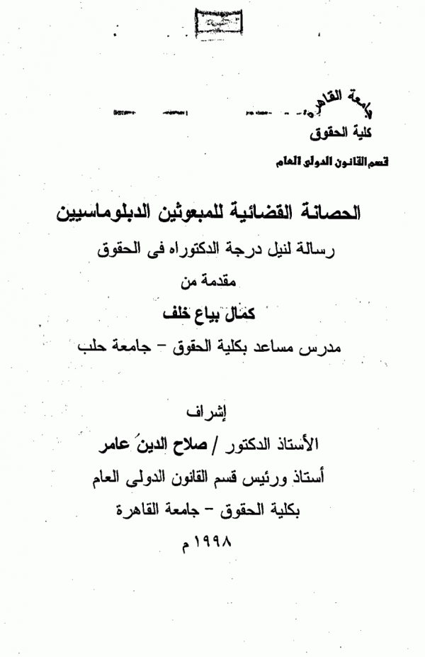 Dissertation note: اطروحة (دكتوراه) - جامعة القاهرة - كلية الحقوق - قسم القانون الدولى، 1998