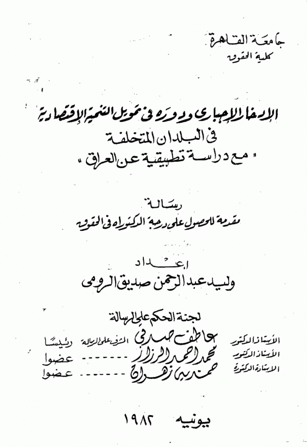 Dissertation note: أطروحة (دكتوراه) - جامعة القاهرة، كلية الحقوق، قسم المالية العامة والتشريع الضريبي 1983.