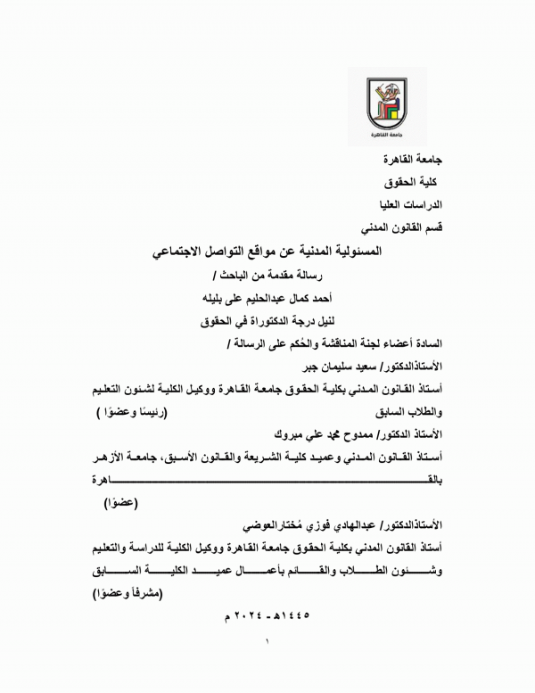 أطروحة (دكتوراه)-جامعة القاهرة-كلية الحقوق-قسم القانون المدني، 2024