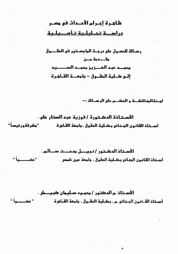 Dissertation note: اطروحة (ماجستير) - جامعة القاهرة - كلية الحقوق - قسم القانون الجنائى، 1997