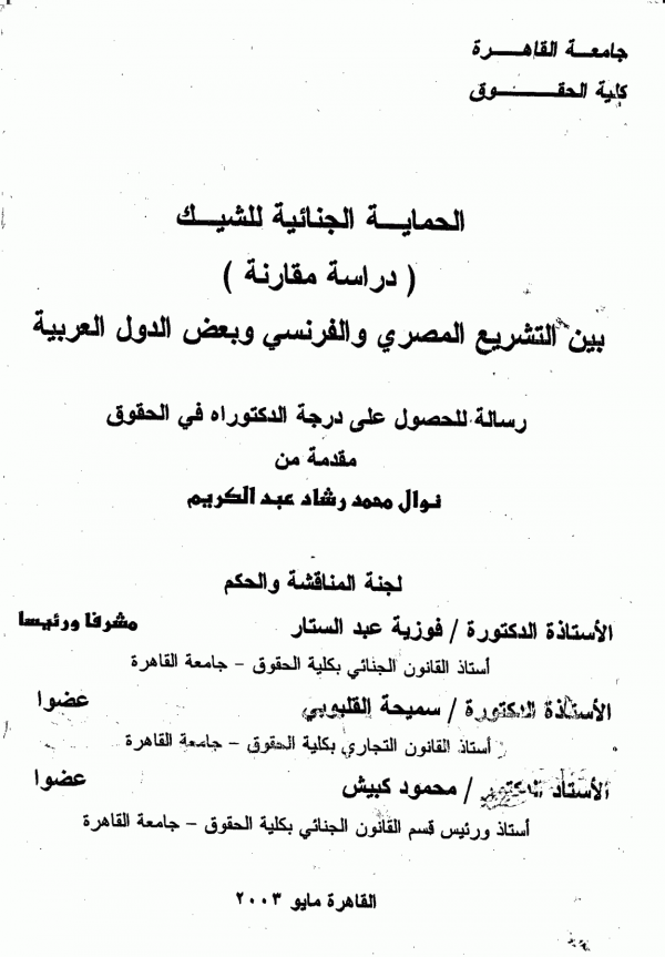 Dissertation note: اطروحة(ماجستير) - جامعة القاهرة - كلية الحقوق - قسم القانون الجنائى، 1993