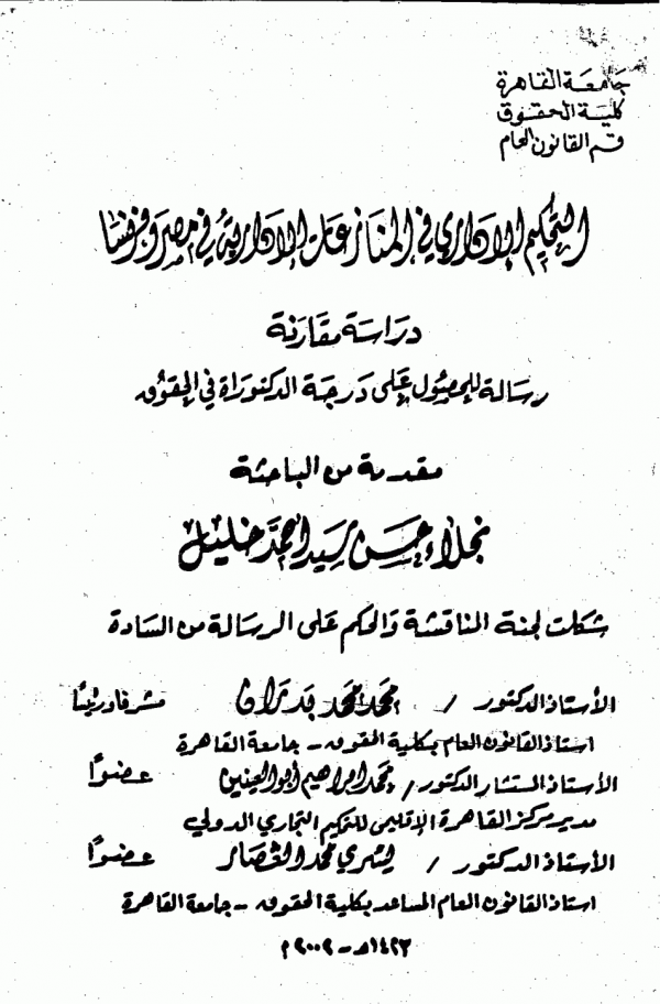 Dissertation note: اطروحة (دكتوراه) - جامعة القاهرة - كلية الحقوق - قسم القانون العام، 2009