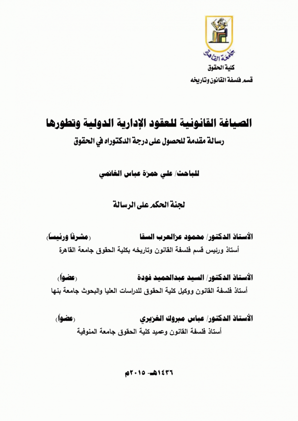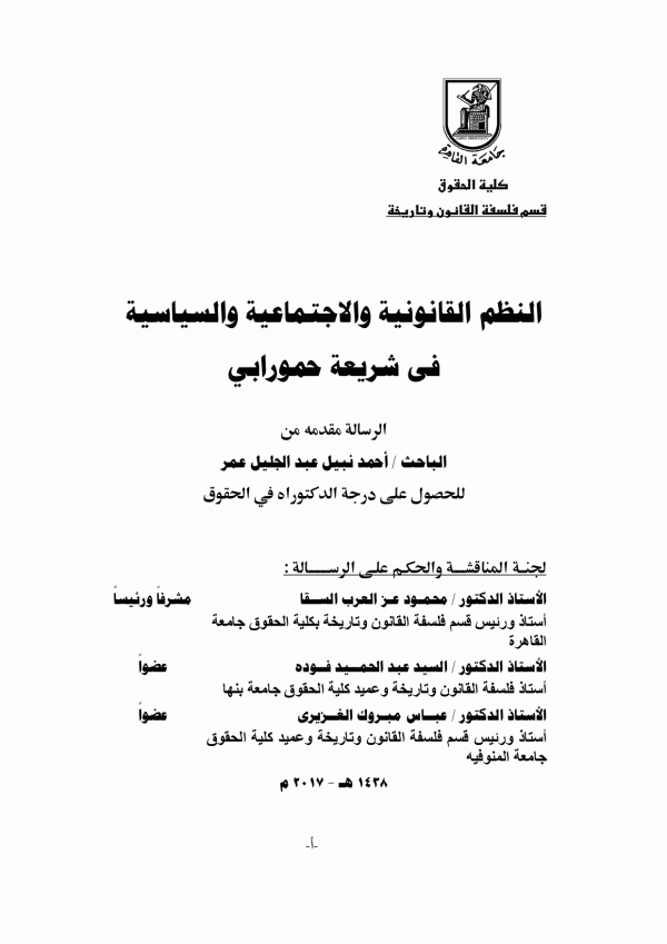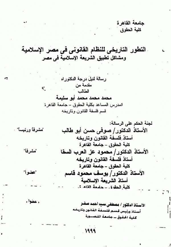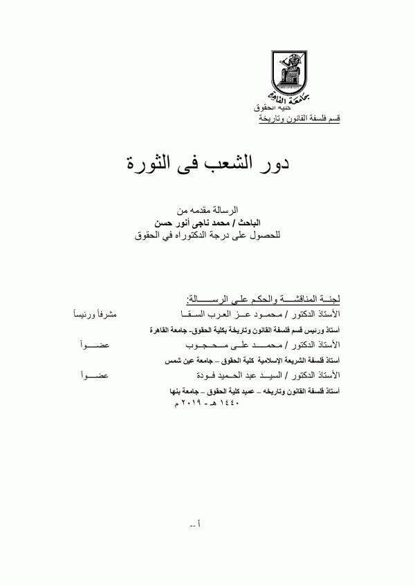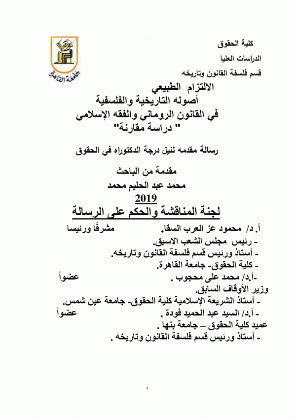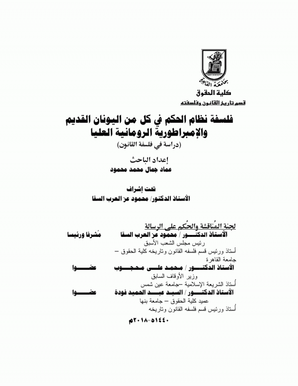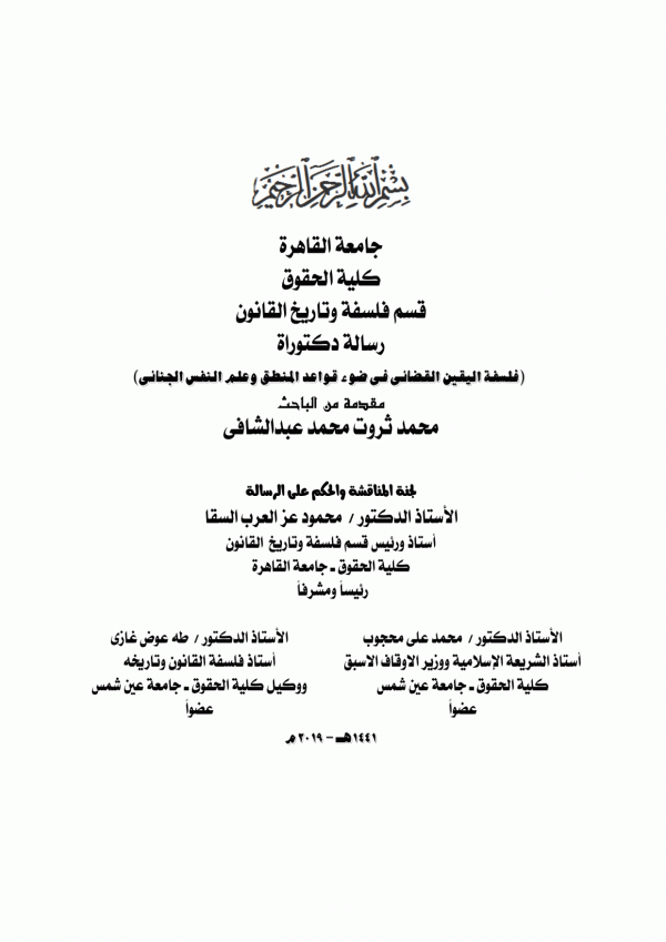Dissertation note: اطروحة (دكتوراه) - جامعة القاهرة - كلية الحقوق - قسم فلسفة القانون و تاريخه، 2019
