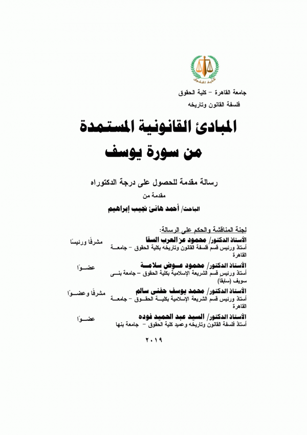 المبادئ القانونية المستمدة من سورة يوسف / أحمد هانئ نجيب إبراهيم by