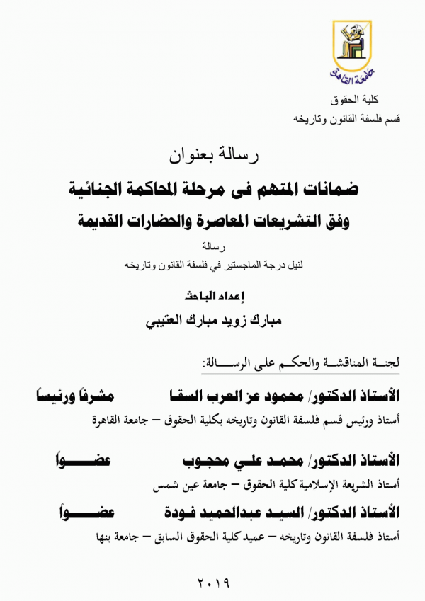 Language: Arabic Summary language: Arabic Producer: القاهرة: كلية الحقوق - جامعة القاهرة ، 2019