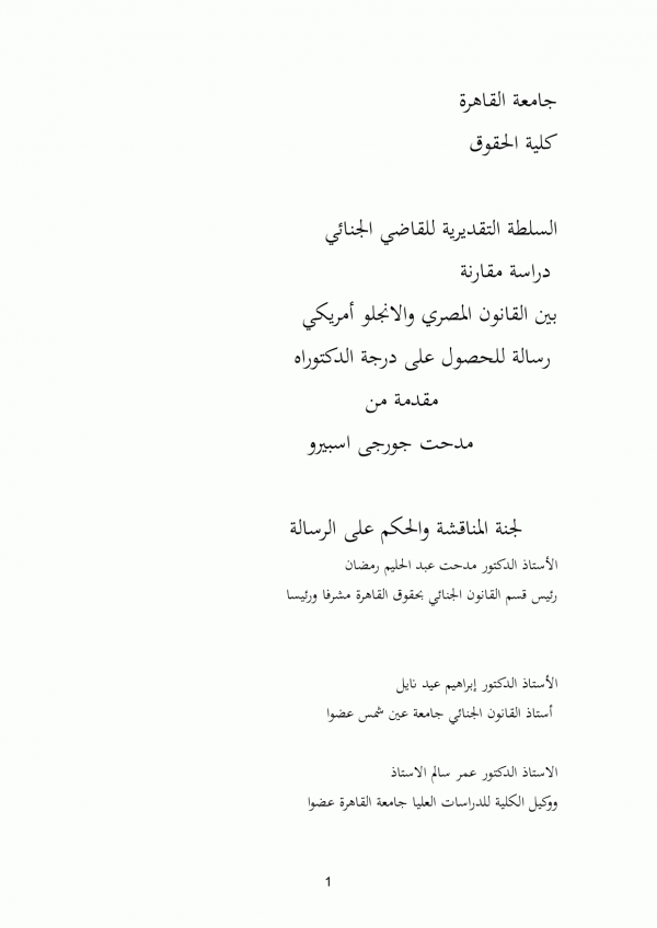 Dissertation note: أطروحة (دكتوراه)-جامعة القاهرة-كلية الحقوق-قسم القانون الجنائي، 2023