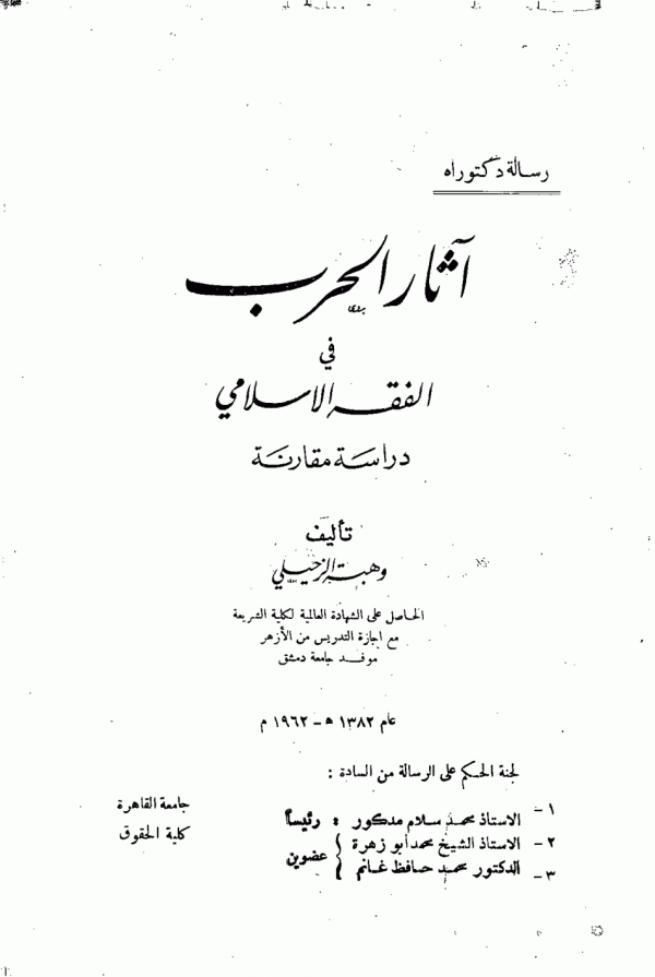 أطروحة (دكتوراه)-جامعة القاهرة، كلية الحقوق، قسم الشريعة الإسلامية 1962.