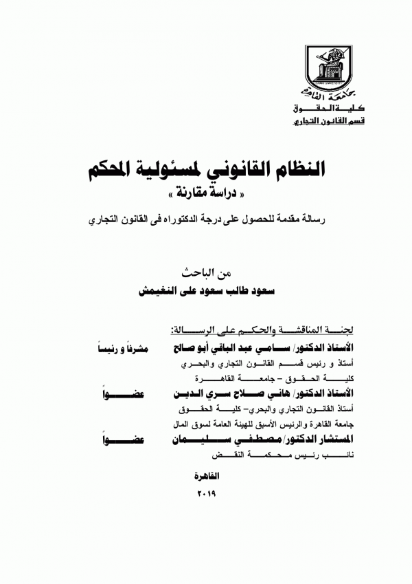 Dissertation note: اطروحة (دكتوراه) - جامعة القاهرة - كلية الحقوق - قسم القانون التجارى، 2019