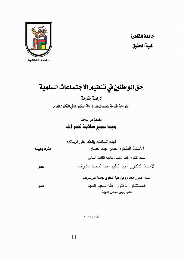 Dissertation note: أطروحة (دكتوراه)-جامعة القاهرة، كلية الحقوق، قسم القانون العام 2022.