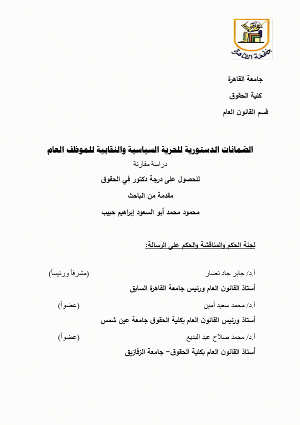 Dissertation note: اطروحة (دكتوراه) - جامعة القاهرة - كلية الحقوق - قسم القانون العام، 1997