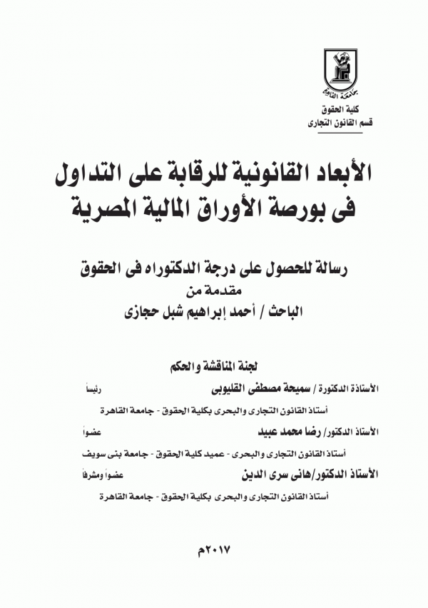 الأبعاد القانونية للرقابة على التداول فى بورصة الأوراق المالية المصرية / أحمد إبراهيم شبل حجازى by