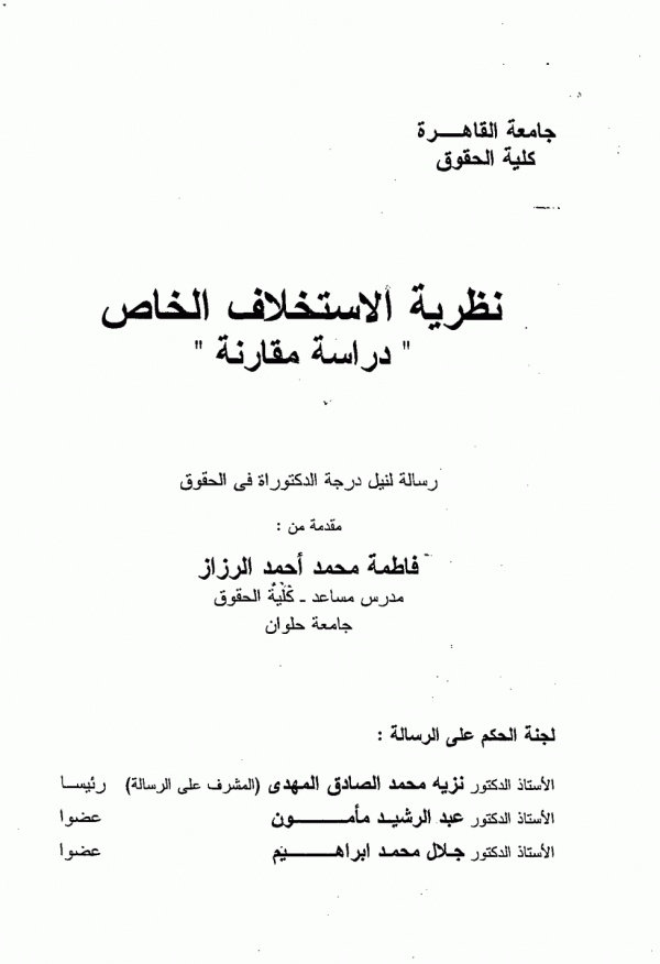 نظرية الاستخلاف الخاص : دراسة مقارنة / فاطمة محمد احمد الرزاز by
