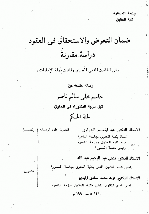 Dissertation note: اطروحة(دكتوراه) - جامعة القاهرة - كلية الحقوق - قسم القانون المدني، 1990