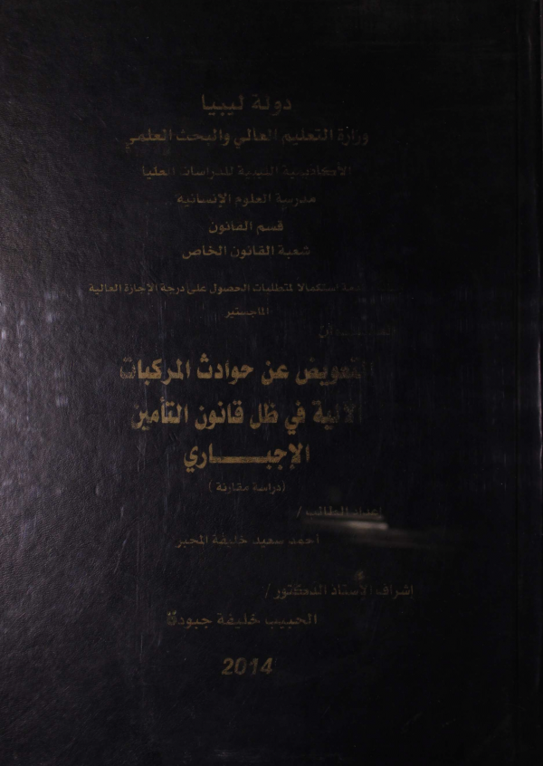 التعويض عن حوادث المركبات الالية فى ظل قانون التامين الاجبارى : دراسة مقارنة / إعداد احمد سعيد خليفة المجبر؛ إشراف الحبيب خليفة جبودة by