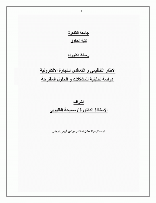Dissertation note: اطروحة (دكتوراه) - جامعة القاهرة - كلية الحقوق - قسم القانون التجاري، 2015