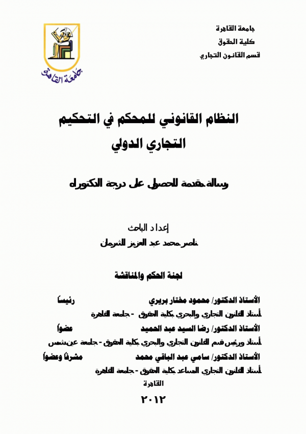Dissertation note: أطروحة (دكتوراه)-جامعة القاهرة، 2011، قسم القانون التجاري