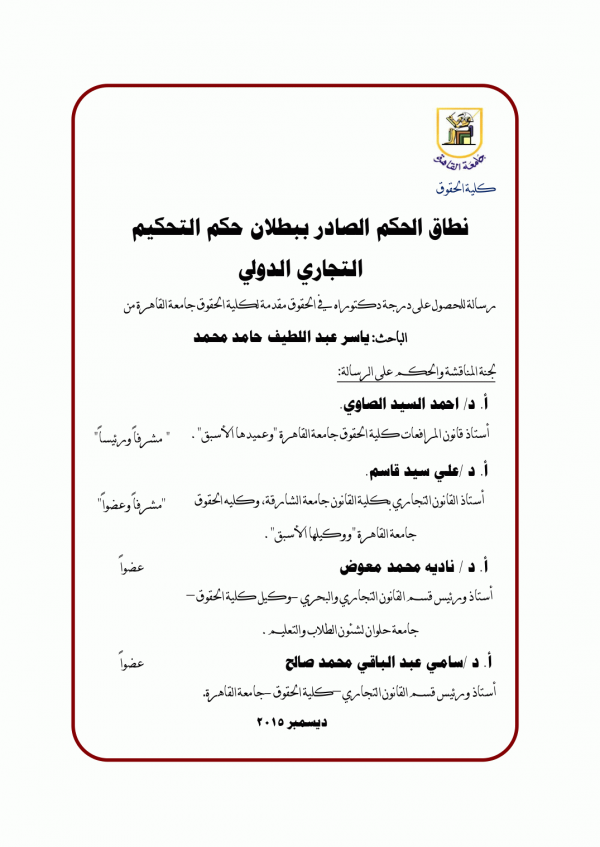 Language: Arabic Summary language: Arabic Producer: القاهرة كلية الحقوق - جامعة القاهرة 2015