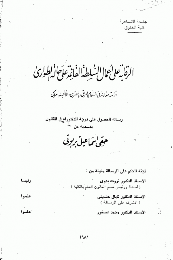 Dissertation note: اطروحة(دكتوراه) - جامعة القاهرة - كلية الحقوق - قسم القانون الجنائى، 1980