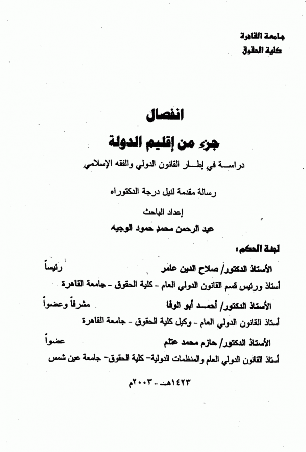Dissertation note: اطروحة (دكتوراه) - جامعة القاهرة - كلية الحقوق - قسم القانون العام، 2019